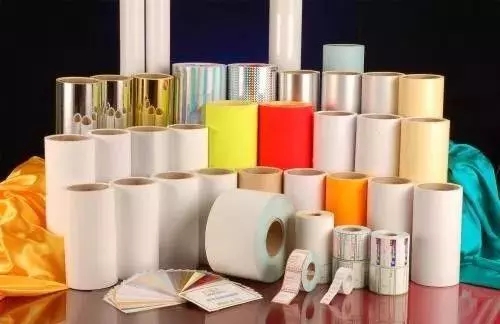 承印材料不干膠標簽材料由面材、黏合劑、底紙組成,根據面材的不同可以分為紙質不干膠材料和薄膜不干膠材料。